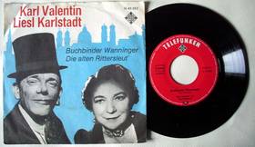 Schallplatte und Cover von Aufnahmen mit dem Komiker-Duo Karl Valentinund Liesl Karlstadt. Eine solche Originalplatte hat bei bayerischen Sammlern einen hohen Wert. Das Dou hat Kult-Charackter.